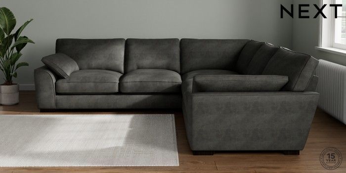 7.3.1 Buy Stamford Grand Relaxed Sit Large Corner Sofa - Universal Monza Faux Leather Easy Clean Dark Grey Large Square Angle - Dark from the Seasons online shop Click here to use our website with more accessibility support, for example screen readers