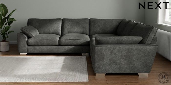 7.3.1 Buy Stamford Grand Relaxed Sit Large Corner Sofa - Universal Plush Chenille Dark Grey Large Square Angle - Chrome Metal from the Seasons online shop Click here to use our website with more accessibility support, for example screen readers
