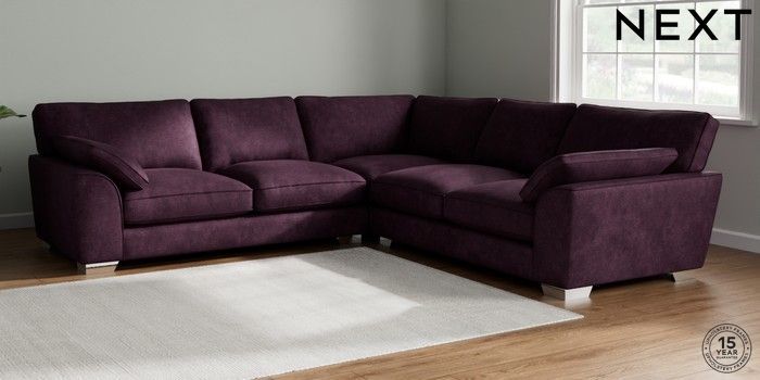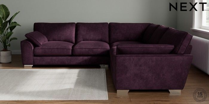 7.3.1 Buy Stamford Grand Relaxed Sit Large Corner Sofa - Universal Plush Chenille Dark Plum Purple Large Square Angle - Chrome Metal from the Seasons online shop Click here to use our website with more accessibility support, for example screen readers