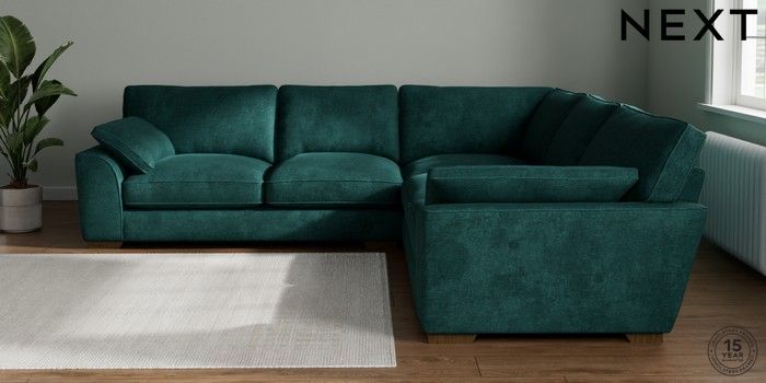 7.3.1 Buy Stamford Grand Relaxed Sit Large Corner Sofa - Universal Plush Chenille Dark Teal Green Large Square Angle - Mid from the Seasons online shop Click here to use our website with more accessibility support, for example screen readers