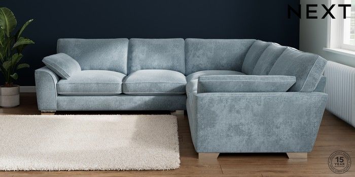 7.3.1 Buy Stamford Grand Relaxed Sit Large Corner Sofa - Universal Plush Chenille Light Blue Large Square Angle - Chrome Metal from the Seasons online shop Click here to use our website with more accessibility support, for example screen readers