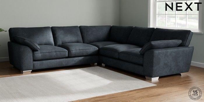 7.3.1 Buy Stamford Grand Relaxed Sit Large Corner Sofa - Universal Plush Chenille Slate Blue Large Square Angle - Chrome Metal from the Seasons online shop Click here to use our website with more accessibility support, for example screen readers