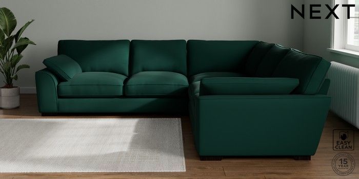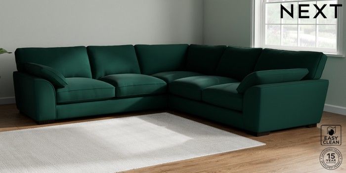 7.3.1 Buy Stamford Grand Relaxed Sit Large Corner Sofa - Universal Plush Velvet Easy Clean Bottle Green Large Square Angle - Dark from the Seasons online shop Click here to use our website with more accessibility support, for example screen readers