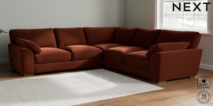 7.3.1 Buy Stamford Grand Relaxed Sit Large Corner Sofa - Universal Plush Velvet Easy Clean Ginger Orange Large Square Angle - Mid from the Seasons online shop Click here to use our website with more accessibility support, for example screen readers