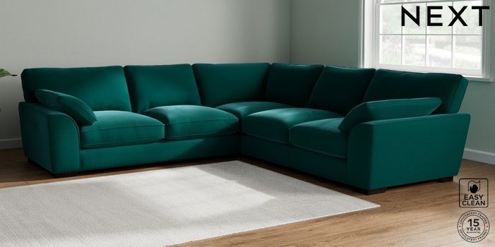 7.3.1 Buy Stamford Grand Relaxed Sit Large Corner Sofa - Universal Plush Velvet Easy Clean Juniper Green Large Square Angle - Dark from the Seasons online shop Click here to use our website with more accessibility support, for example screen readers