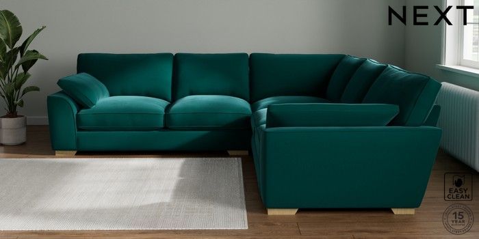 7.3.1 Buy Stamford Grand Relaxed Sit Large Corner Sofa - Universal Plush Velvet Easy Clean Juniper Green Large Square Angle - Light from the Seasons online shop Click here to use our website with more accessibility support, for example screen readers