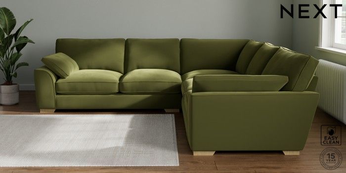 7.3.1 Buy Stamford Grand Relaxed Sit Large Corner Sofa - Universal Plush Velvet Easy Clean Mid Olive Green Large Square Angle - Light from the Seasons online shop Click here to use our website with more accessibility support, for example screen readers