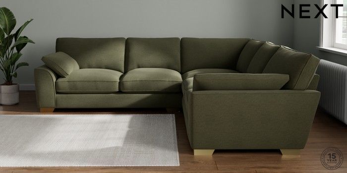 7.3.1 Buy Stamford Grand Relaxed Sit Large Corner Sofa - Universal Ripple Chenille Mid Moss Green Large Square Angle - Brushed Brass from the Seasons online shop Click here to use our website with more accessibility support, for example screen readers