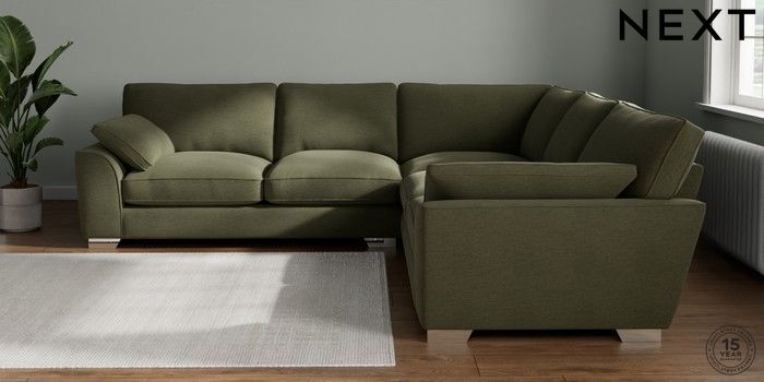 7.3.1 Buy Stamford Grand Relaxed Sit Large Corner Sofa - Universal Ripple Chenille Mid Moss Green Large Square Angle - Chrome Metal from the Seasons online shop Click here to use our website with more accessibility support, for example screen readers