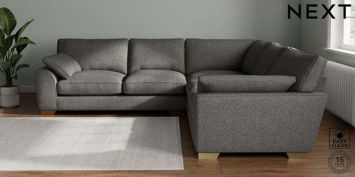 7.3.1 Buy Stamford Grand Relaxed Sit Large Corner Sofa - Universal Tweedy Blend Easy Clean Dark Grey Large Square Angle - Brushed Brass from the Seasons online shop Click here to use our website with more accessibility support, for example screen readers