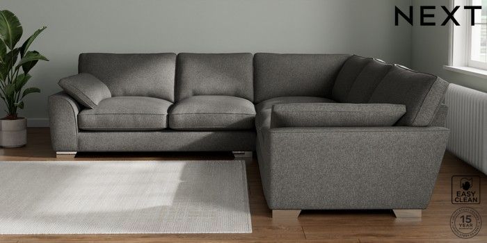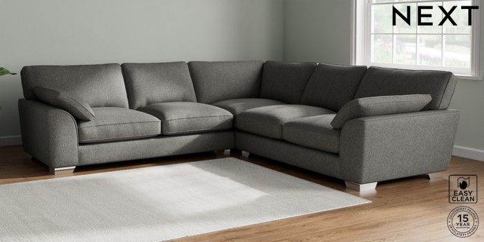 7.3.1 Buy Stamford Grand Relaxed Sit Large Corner Sofa - Universal Tweedy Blend Easy Clean Dark Grey Large Square Angle - Chrome Metal from the Seasons online shop Click here to use our website with more accessibility support, for example screen readers