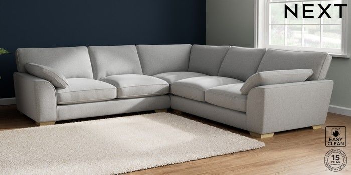 7.3.1 Buy Stamford Grand Relaxed Sit Large Corner Sofa - Universal Tweedy Blend Easy Clean Light Silver Grey Large Square Angle - Light from the Seasons online shop Click here to use our website with more accessibility support, for example screen readers