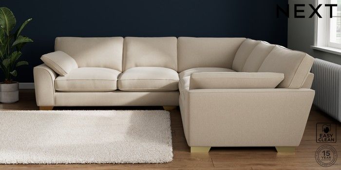 7.3.1 Buy Stamford Grand Relaxed Sit Large Corner Sofa - Universal Tweedy Blend Easy Clean Oyster Large Square Angle - Brushed Brass from the Seasons online shop Click here to use our website with more accessibility support, for example screen readers