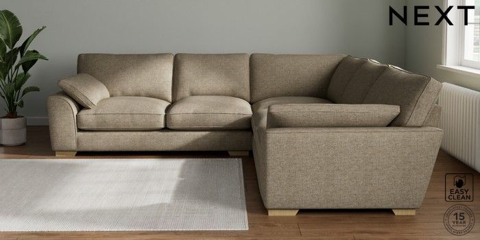 7.3.1 Buy Stamford Grand Relaxed Sit Large Corner Sofa - Universal Woven Chenille Easy Clean Mid Natural Large Square Angle - Light from the Seasons online shop Click here to use our website with more accessibility support, for example screen readers
