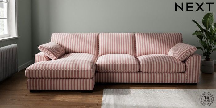 7.3.1 Buy Stamford Grand Relaxed Sit Large Sofa Chaise - Left Hand Bold Chenille Stripe Dark Pink Large Square Angle - Dark from the Seasons online shop Click here to use our website with more accessibility support, for example screen readers
