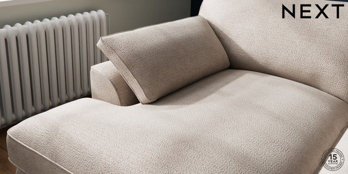 7.3.1 Buy Stamford Grand Relaxed Sit Large Sofa Chaise - Left Hand Boucle Chenille Light Natural Large Square Angle - Brushed Brass from the Seasons online shop Click here to use our website with more accessibility support, for example screen readers
