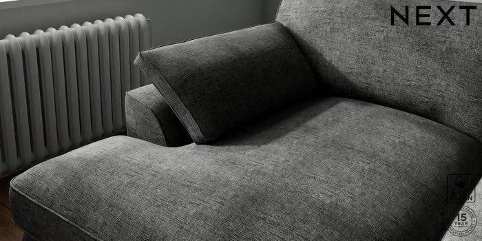 7.3.1 Buy Stamford Grand Relaxed Sit Large Sofa Chaise - Left Hand Boucle Weave Easy Clean Charcoal Grey Large Square Angle - Brushed Brass from the Seasons online shop Click here to use our website with more accessibility support, for example screen readers