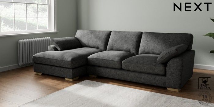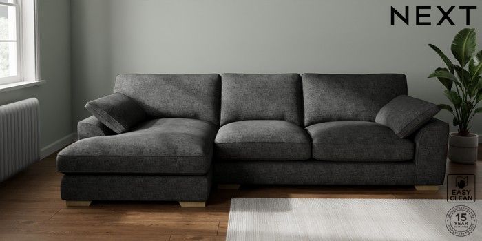 7.3.1 Buy Stamford Grand Relaxed Sit Large Sofa Chaise - Left Hand Boucle Weave Easy Clean Charcoal Grey Large Square Angle - Light from the Seasons online shop Click here to use our website with more accessibility support, for example screen readers