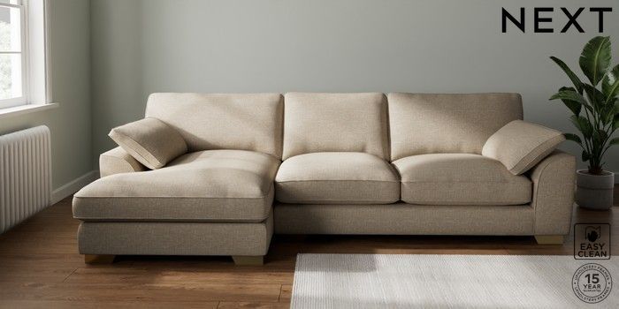 7.3.1 Buy Stamford Grand Relaxed Sit Large Sofa Chaise - Left Hand Boucle Weave Easy Clean Dark Natural Large Square Angle - Brushed Brass from the Seasons online shop Click here to use our website with more accessibility support, for example screen readers