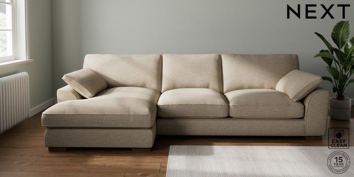 7.3.1 Buy Stamford Grand Relaxed Sit Large Sofa Chaise - Left Hand Boucle Weave Easy Clean Dark Natural Large Square Angle - Mid from the Seasons online shop Click here to use our website with more accessibility support, for example screen readers