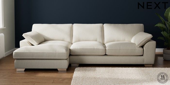 7.3.1 Buy Stamford Grand Relaxed Sit Large Sofa Chaise - Left Hand Chenille Stripe Moss Green Large Square Angle - Chrome Metal from the Seasons online shop Click here to use our website with more accessibility support, for example screen readers