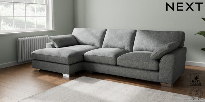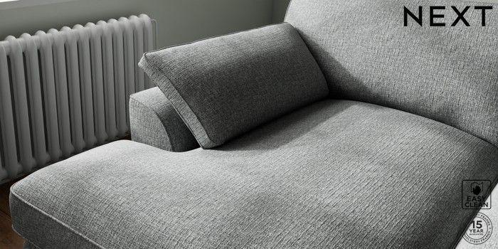 7.3.1 Buy Stamford Grand Relaxed Sit Large Sofa Chaise - Left Hand Chunky Boucle Easy Clean Mid Grey Large Square Angle - Chrome Metal from the Seasons online shop Click here to use our website with more accessibility support, for example screen readers