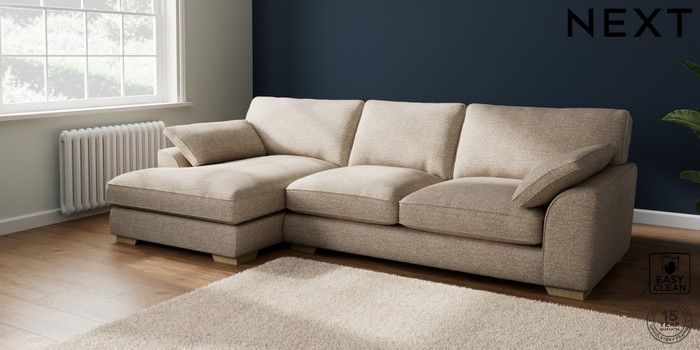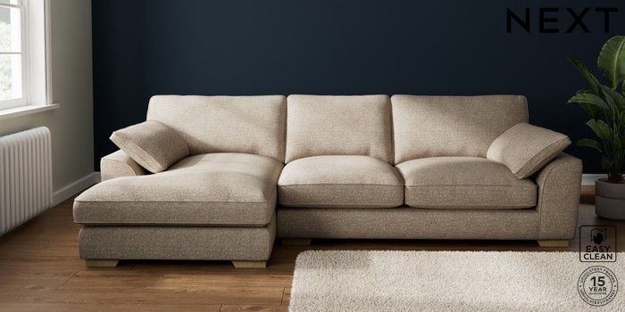 7.3.1 Buy Stamford Grand Relaxed Sit Large Sofa Chaise - Left Hand Chunky Boucle Easy Clean Mid Natural Large Square Angle - Light from the Seasons online shop Click here to use our website with more accessibility support, for example screen readers