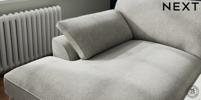 7.3.1 Buy Stamford Grand Relaxed Sit Large Sofa Chaise - Left Hand Chunky Chenille Light Grey Large Square Angle - Gunmetal from the Seasons online shop Click here to use our website with more accessibility support, for example screen readers