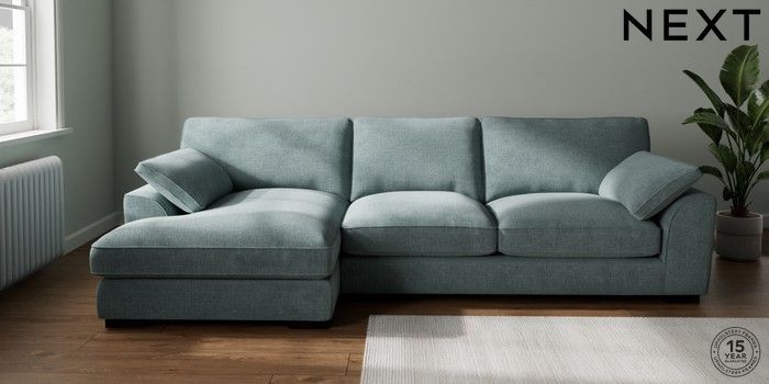 7.3.1 Buy Stamford Grand Relaxed Sit Large Sofa Chaise - Left Hand Chunky Chenille Light Teal Green Large Square Angle - Dark from the Seasons online shop Click here to use our website with more accessibility support, for example screen readers