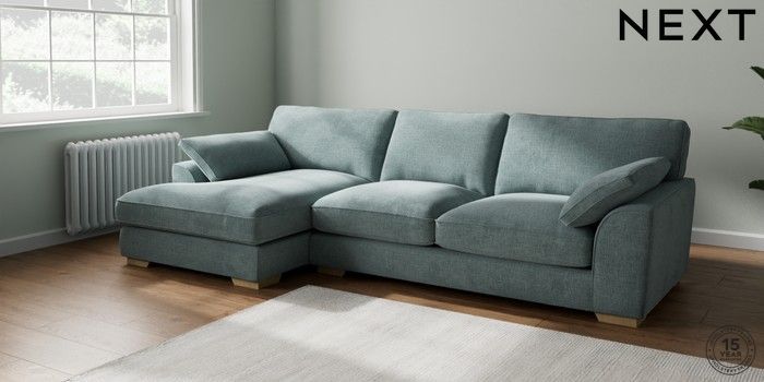 7.3.1 Buy Stamford Grand Relaxed Sit Large Sofa Chaise - Left Hand Chunky Chenille Light Teal Green Large Square Angle - Light from the Seasons online shop Click here to use our website with more accessibility support, for example screen readers