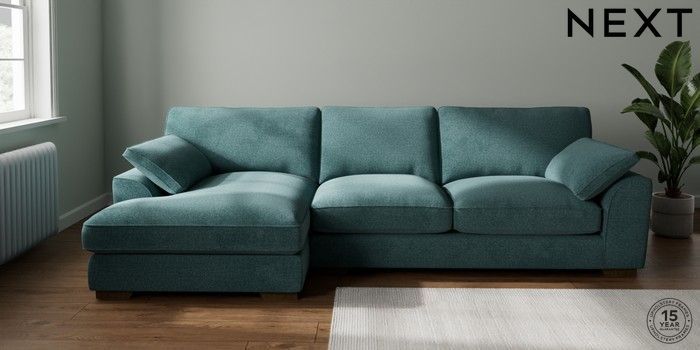 7.3.1 Buy Stamford Grand Relaxed Sit Large Sofa Chaise - Left Hand Chunky Chenille Mid Teal Green Large Square Angle - Mid from the Seasons online shop Click here to use our website with more accessibility support, for example screen readers