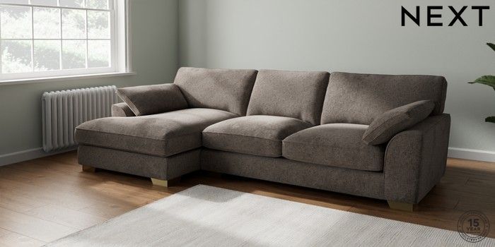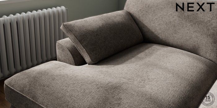 7.3.1 Buy Stamford Grand Relaxed Sit Large Sofa Chaise - Left Hand Chunky Chenille Mink Brown Large Square Angle - Brushed Brass from the Seasons online shop Click here to use our website with more accessibility support, for example screen readers