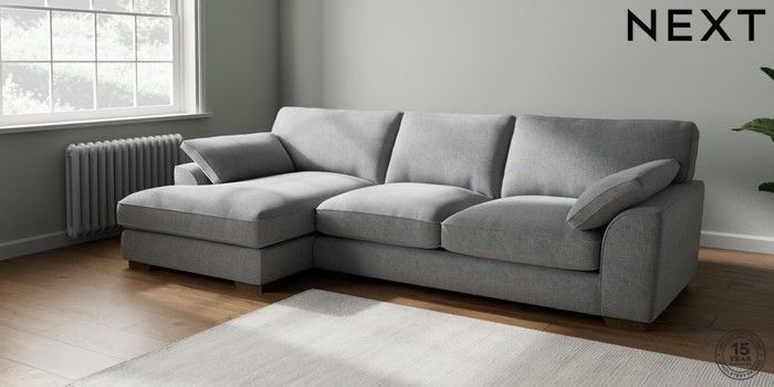 7.3.1 Buy Stamford Grand Relaxed Sit Large Sofa Chaise - Left Hand Chunky Marl Mid Grey Large Square Angle - Mid from the Seasons online shop Click here to use our website with more accessibility support, for example screen readers