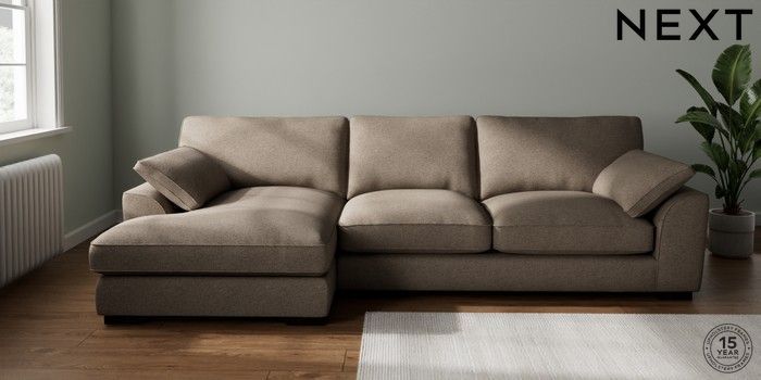 7.3.1 Buy Stamford Grand Relaxed Sit Large Sofa Chaise - Left Hand Chunky Weave Dark Natural Large Square Angle - Dark from the Seasons online shop Click here to use our website with more accessibility support, for example screen readers