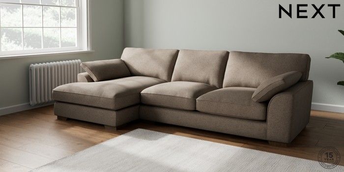 7.3.1 Buy Stamford Grand Relaxed Sit Large Sofa Chaise - Left Hand Chunky Weave Dark Natural Large Square Angle - Mid from the Seasons online shop Click here to use our website with more accessibility support, for example screen readers
