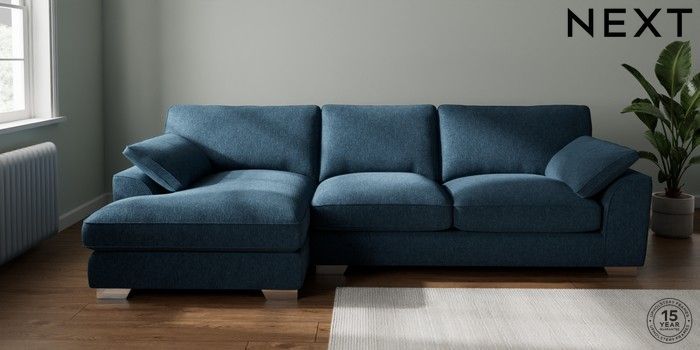7.3.1 Buy Stamford Grand Relaxed Sit Large Sofa Chaise - Left Hand Cotswold Chenille Dark Blue Large Square Angle - Chrome Metal from the Seasons online shop Click here to use our website with more accessibility support, for example screen readers