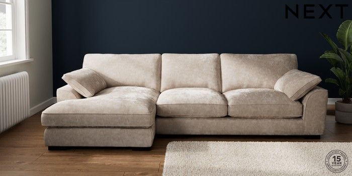 7.3.1 Buy Stamford Grand Relaxed Sit Large Sofa Chaise - Left Hand Distressed Velour Mid Natural Large Square Angle - Dark from the Seasons online shop Click here to use our website with more accessibility support, for example screen readers