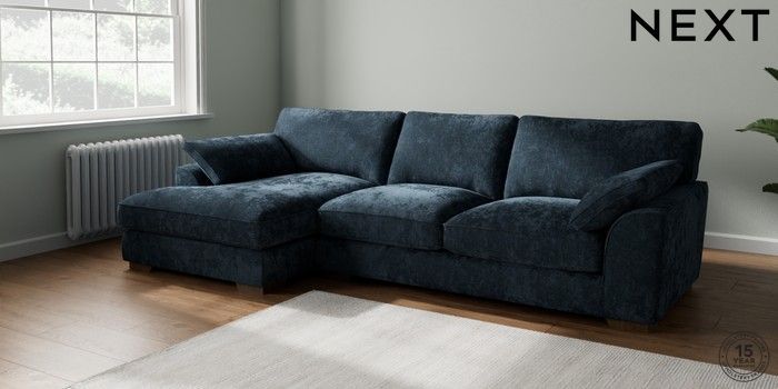 7.3.1 Buy Stamford Grand Relaxed Sit Large Sofa Chaise - Left Hand Distressed Velour Midnight Blue Large Square Angle - Mid from the Seasons online shop Click here to use our website with more accessibility support, for example screen readers