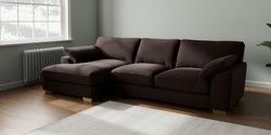 7.3.1 Buy Stamford Grand Relaxed Sit Large Sofa Chaise - Left Hand Fine Chenille Easy Clean Chocolate Brown Large Square Angle - Brushed Brass from the Seasons online shop Click here to use our website with more accessibility support, for example screen readers