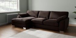 7.3.1 Buy Stamford Grand Relaxed Sit Large Sofa Chaise - Left Hand Fine Chenille Easy Clean Chocolate Brown Large Square Angle - Chrome Metal from the Seasons online shop Click here to use our website with more accessibility support, for example screen readers