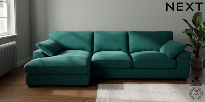 7.3.1 Buy Stamford Grand Relaxed Sit Large Sofa Chaise - Left Hand Fine Chenille Easy Clean Dark Juniper Green Large Square Angle - Dark from the Seasons online shop Click here to use our website with more accessibility support, for example screen readers
