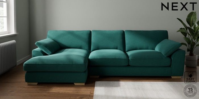 7.3.1 Buy Stamford Grand Relaxed Sit Large Sofa Chaise - Left Hand Fine Chenille Easy Clean Dark Juniper Green Large Square Angle - Light from the Seasons online shop Click here to use our website with more accessibility support, for example screen readers
