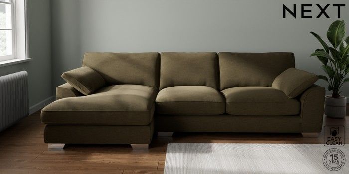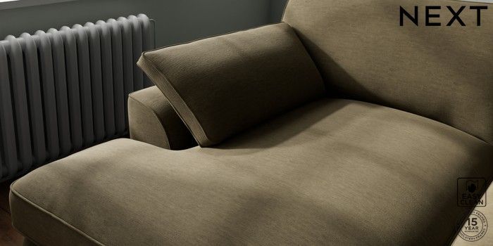 7.3.1 Buy Stamford Grand Relaxed Sit Large Sofa Chaise - Left Hand Fine Chenille Easy Clean Dark Moss Green Large Square Angle - Chrome Metal from the Seasons online shop Click here to use our website with more accessibility support, for example screen readers