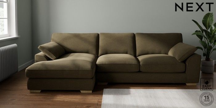 7.3.1 Buy Stamford Grand Relaxed Sit Large Sofa Chaise - Left Hand Fine Chenille Easy Clean Dark Moss Green Large Square Angle - Light from the Seasons online shop Click here to use our website with more accessibility support, for example screen readers