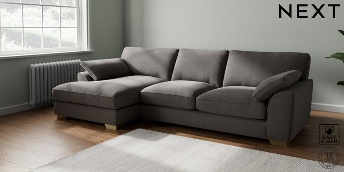7.3.1 Buy Stamford Grand Relaxed Sit Large Sofa Chaise - Left Hand Fine Chenille Easy Clean Dark Smoke Grey Large Square Angle - Brushed Brass from the Seasons online shop Click here to use our website with more accessibility support, for example screen readers