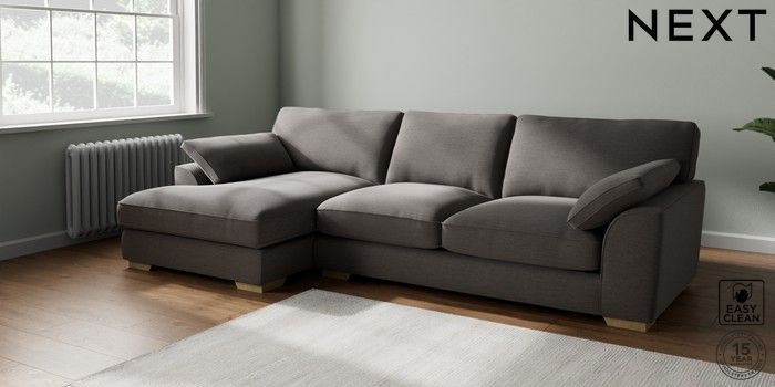 7.3.1 Buy Stamford Grand Relaxed Sit Large Sofa Chaise - Left Hand Fine Chenille Easy Clean Dark Smoke Grey Large Square Angle - Light from the Seasons online shop Click here to use our website with more accessibility support, for example screen readers