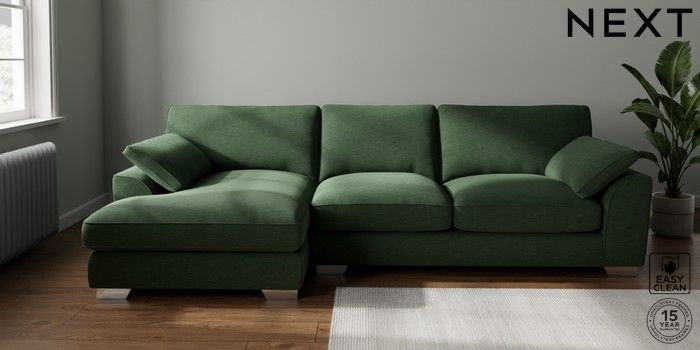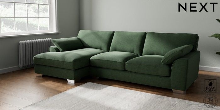 7.3.1 Buy Stamford Grand Relaxed Sit Large Sofa Chaise - Left Hand Fine Chenille Easy Clean Mid Khaki Green Large Square Angle - Chrome Metal from the Seasons online shop Click here to use our website with more accessibility support, for example screen readers