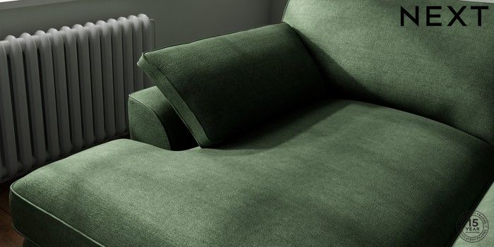 7.3.1 Buy Stamford Grand Relaxed Sit Large Sofa Chaise - Left Hand Luxe Chenille Dark Green Large Square Angle - Brushed Brass from the Seasons online shop Click here to use our website with more accessibility support, for example screen readers