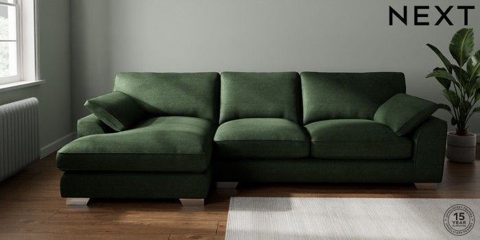 7.3.1 Buy Stamford Grand Relaxed Sit Large Sofa Chaise - Left Hand Luxe Chenille Dark Green Large Square Angle - Chrome Metal from the Seasons online shop Click here to use our website with more accessibility support, for example screen readers