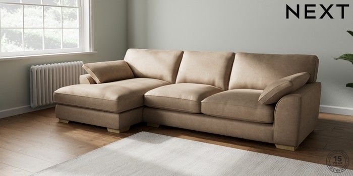 7.3.1 Buy Stamford Grand Relaxed Sit Large Sofa Chaise - Left Hand Luxe Chenille Mid Camel Beige Large Square Angle - Light from the Seasons online shop Click here to use our website with more accessibility support, for example screen readers